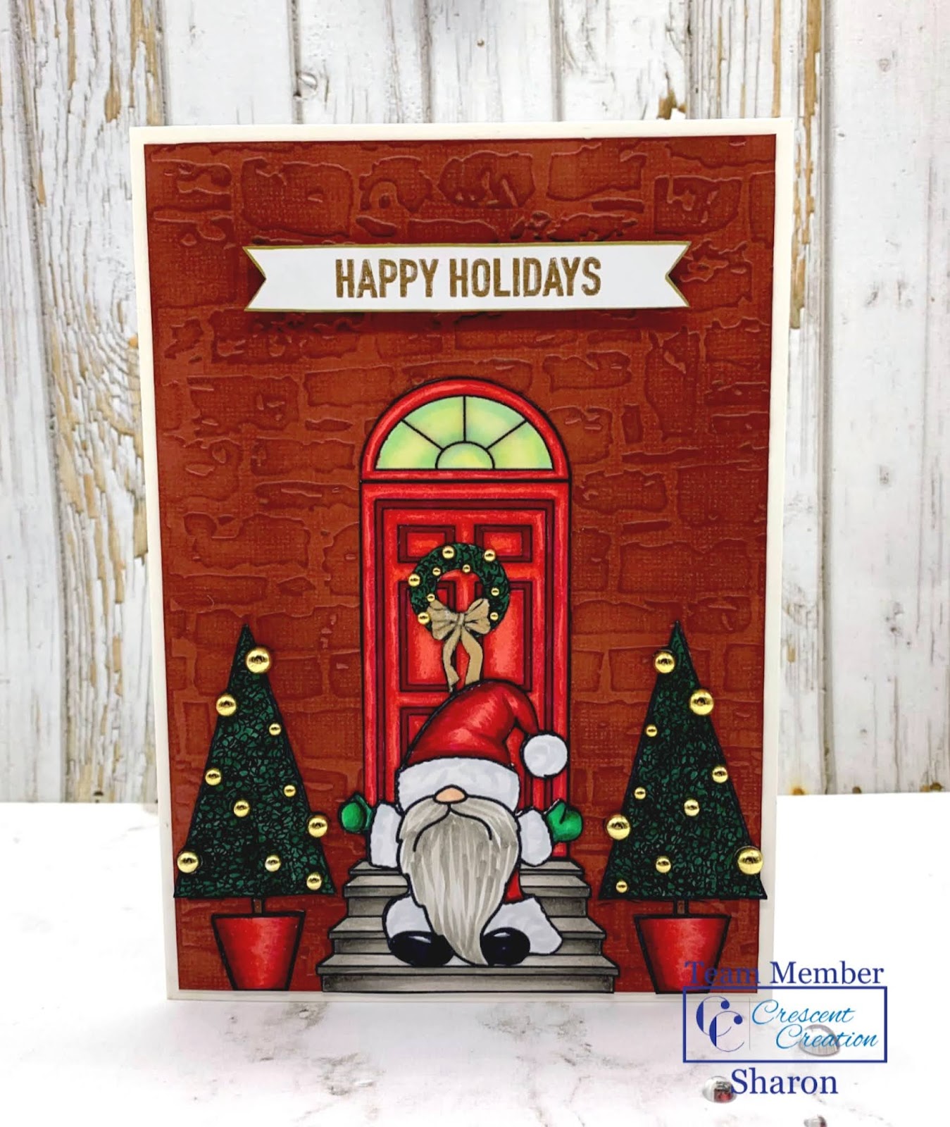 My post today is to celebrate the new release from Crescent Creations and the holidays are coming! To celebrate the new release we are having a blog hop I have used 2 digital stamp sets from their new digital collection, Front Door and Christmas Gnomie. The Front Door collection is a great set that comes with all the components of a stoop and decorations to dress it up. The Christmas Gnomie works well with this set too, and I have decorated both inside and outside of the card with them. Like all of their digital collections the images are PNGs which opaque inside and clear on the outside making them great for scene building.